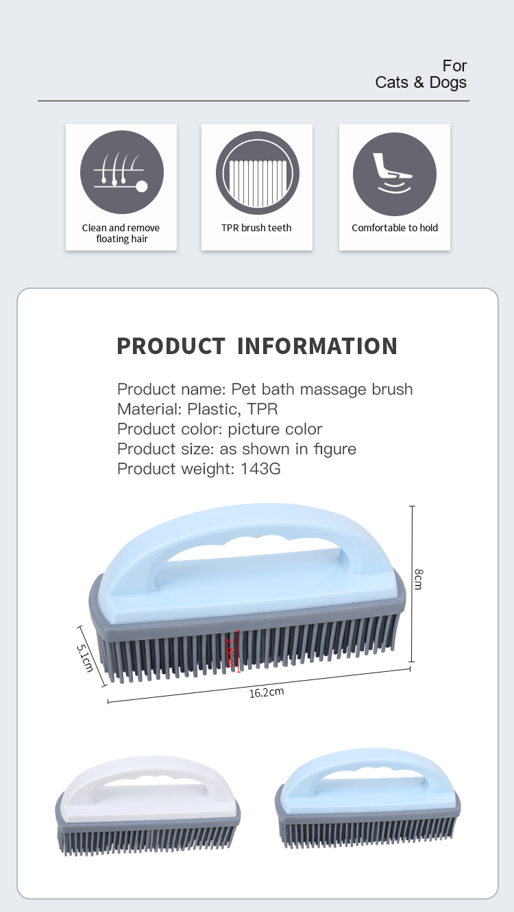 Dog Shower Brush Long Rubber Bristles Cat Bath Massage Brush Pet Fluff Cleaner Hair Removal Brush