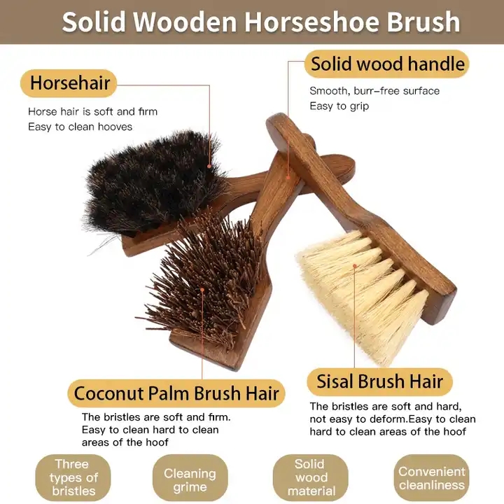 Durable Wooden Handle Soft Horse Hair Bristle Dandy Brush Horse Grooming Tools
