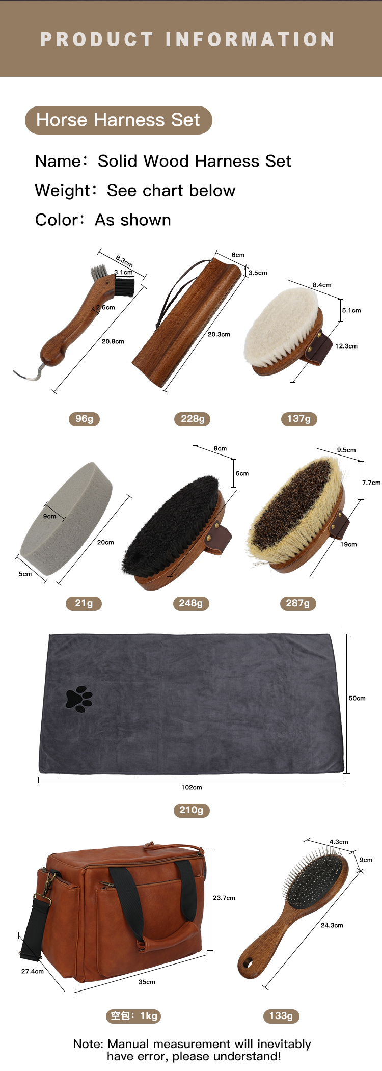 Equestrian Professional Equipment Wooden Horse Grooming Set Tool Horse Brush Horse Grooming Kit