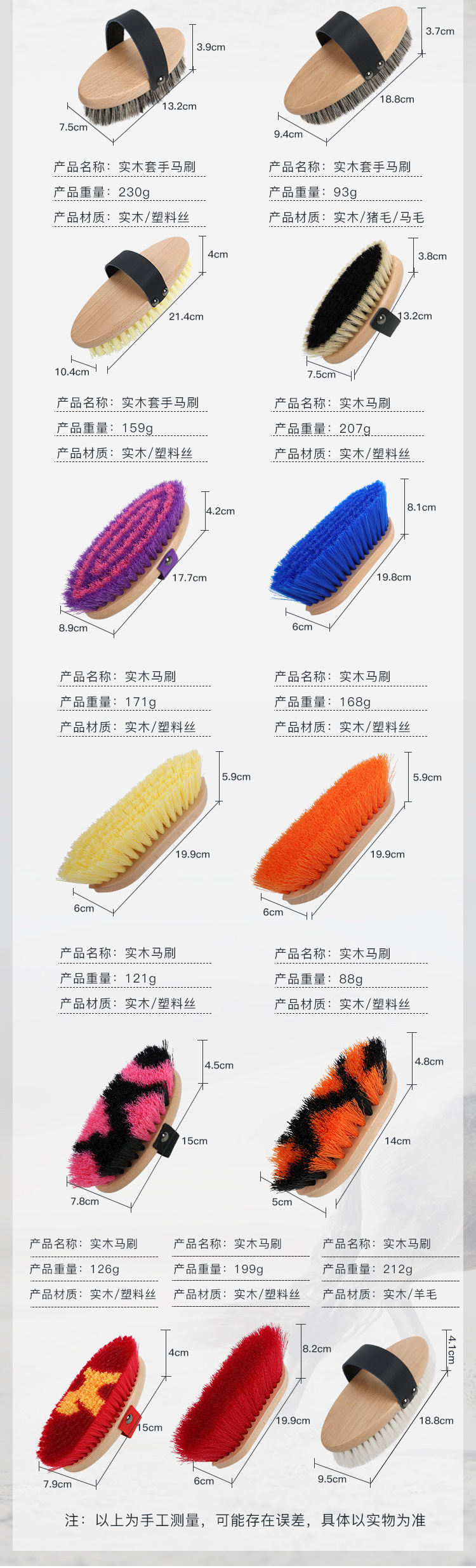 Factory Wholesale Custom Logo Wooden Sisal Pet Horse Hair PP Bristle Horse Grooming Brush