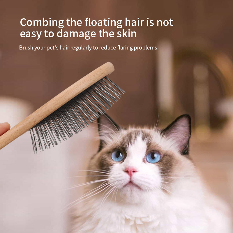 Pet Hair Grooming Tool Stainless Steel Dog Wood Pin Brush