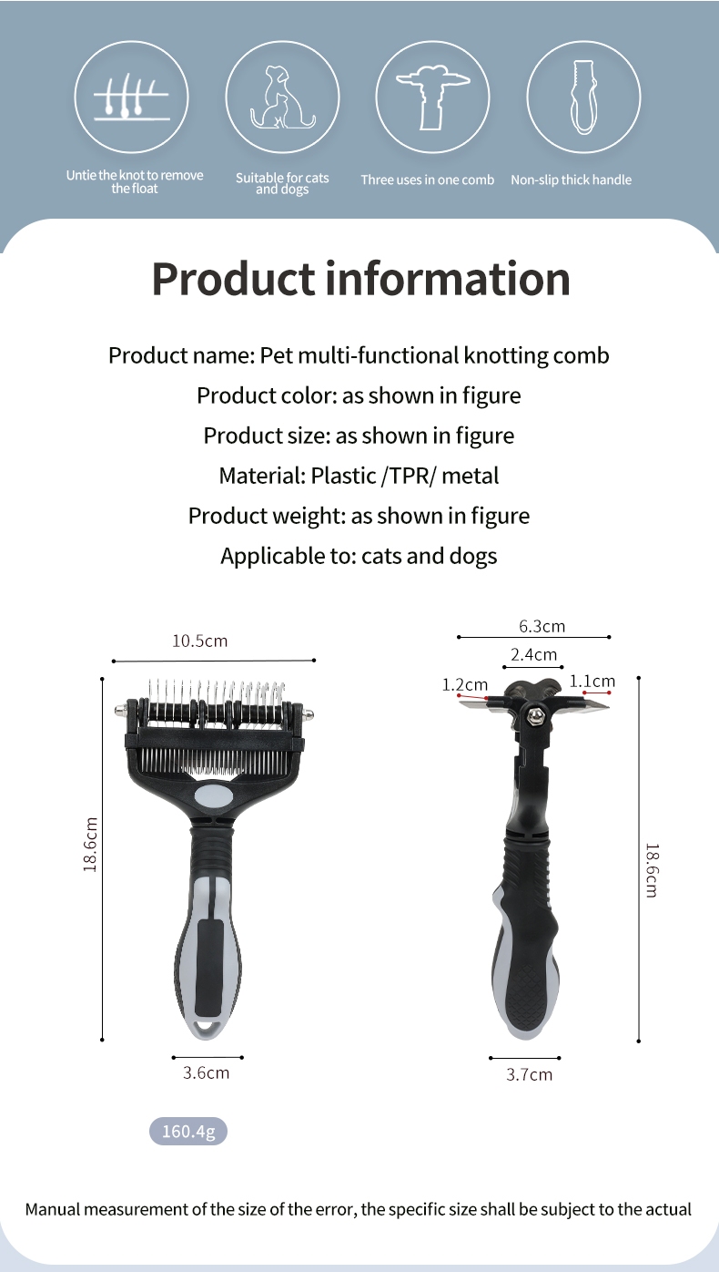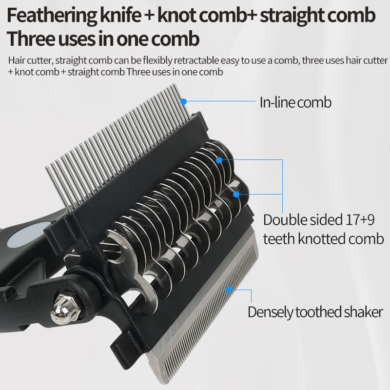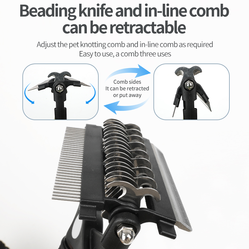 3 in 1 Safe Undercoat Rake Easy Mat Pet Knotting Comb Shedding Comb at Dematting Tool Dog Grooming Brush para sa Mga Aso at Pusa
